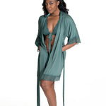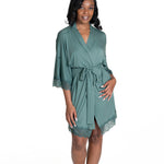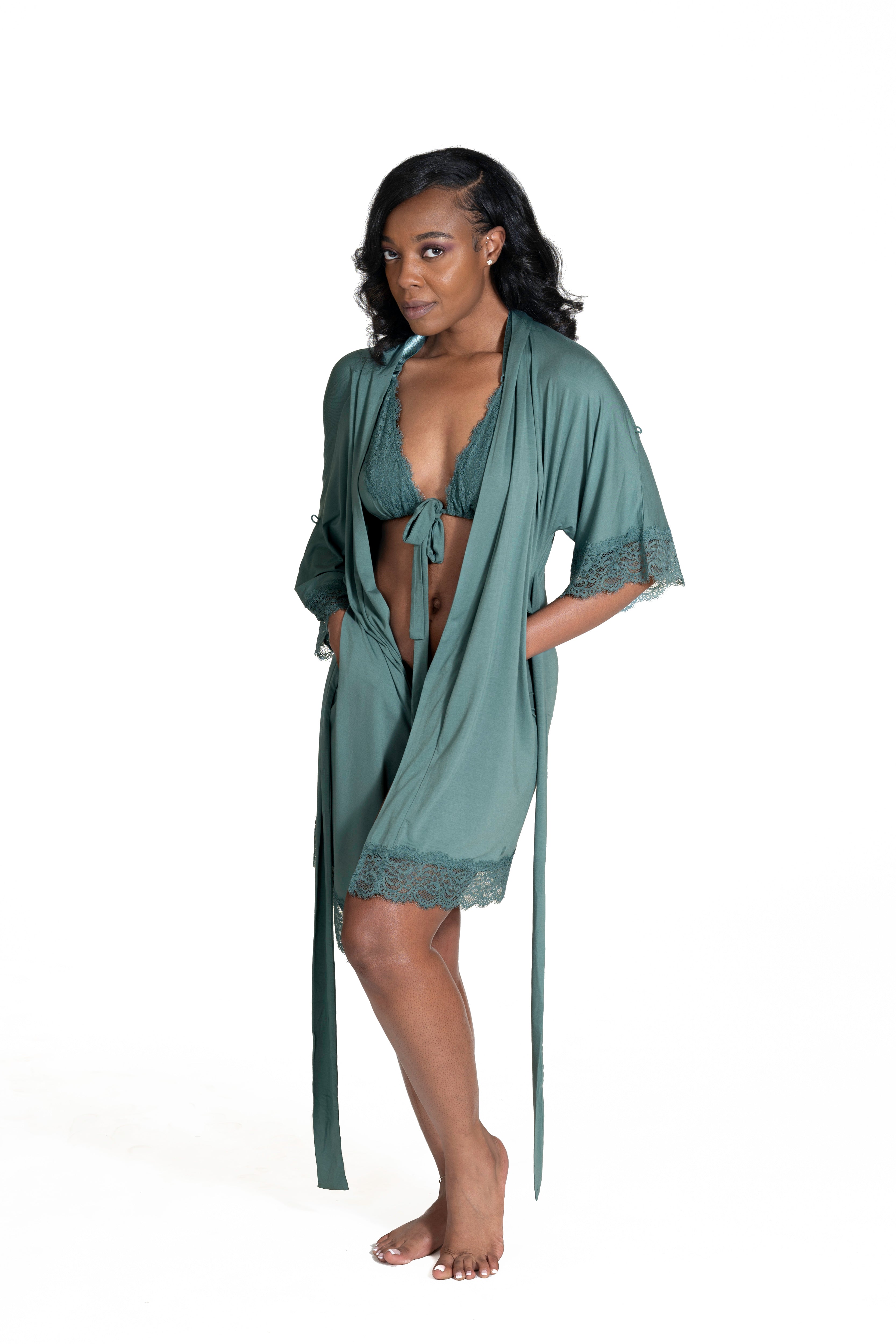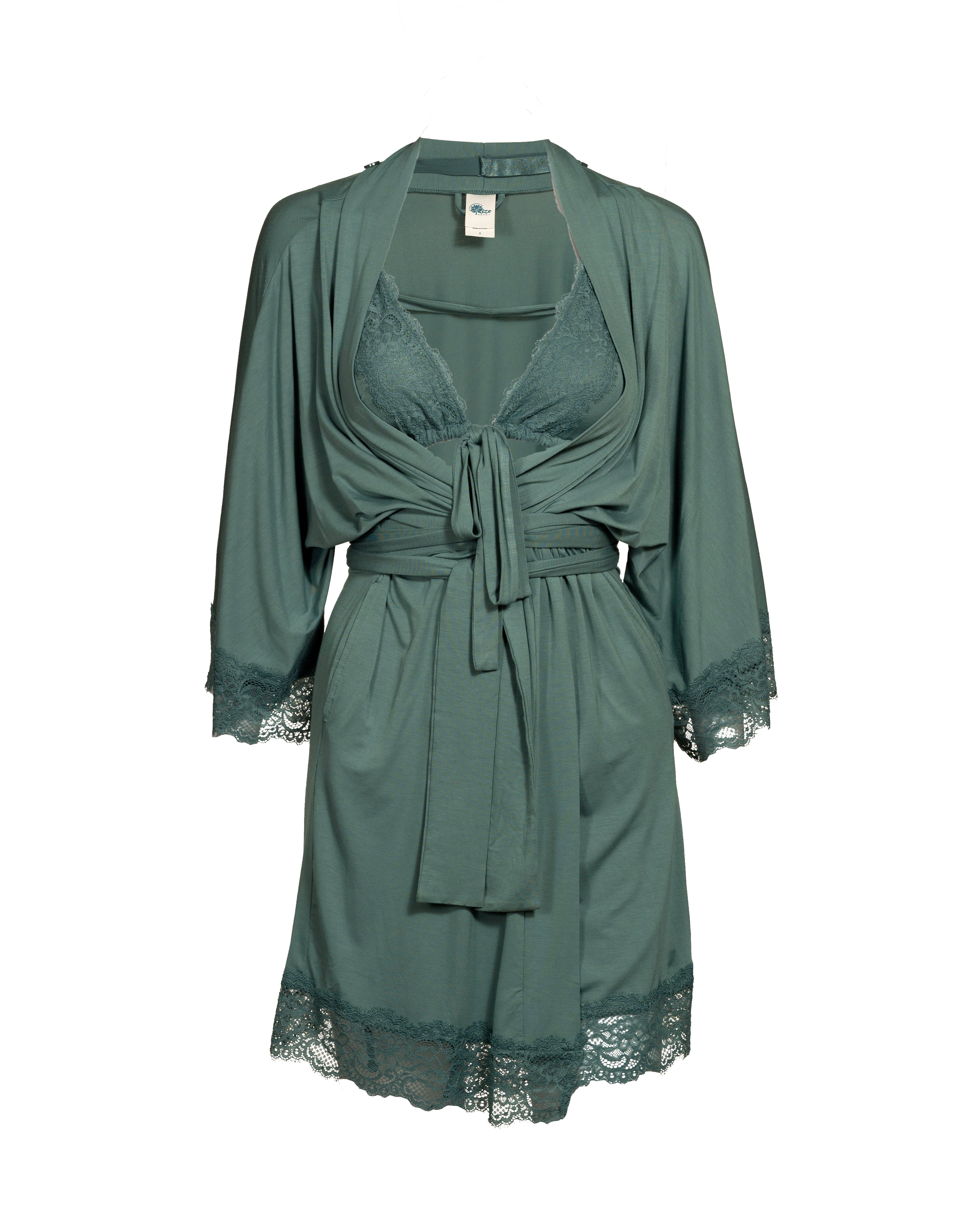 The built-in bra is where the magic starts. It’s a patent-pending, halter-style bra designed to give you support the second you put your robe on—without wires, clips, or complications. The sliding triangle cups adjust to fit AA to DDD and can be removed on days you want less structure. With one simple tie in the front, you’re secure, lifted, and ready—whether you’re pouring coffee, jumping on a Zoom call, or chasing toddlers.